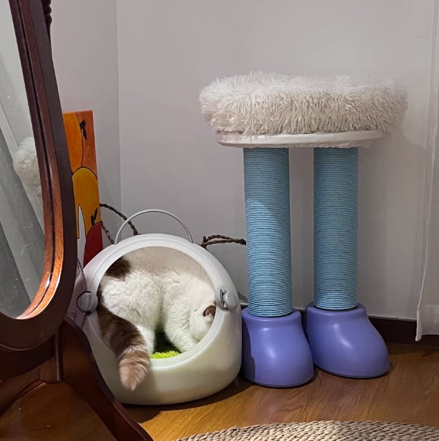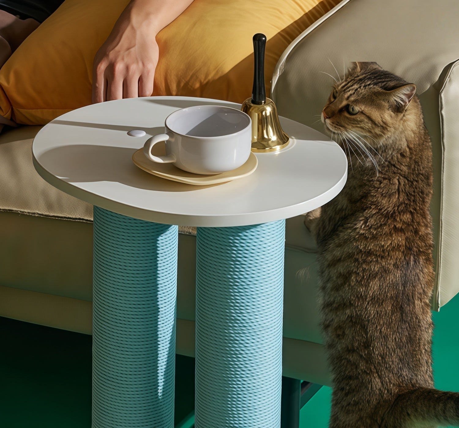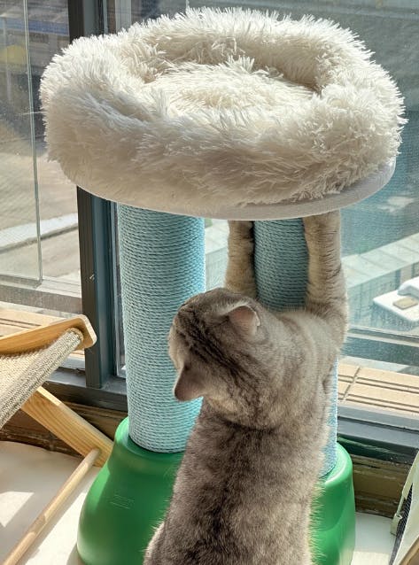 It’s the one item guests ask about. Cat scratches, naps, and I set coffee—everything in one compact piece.