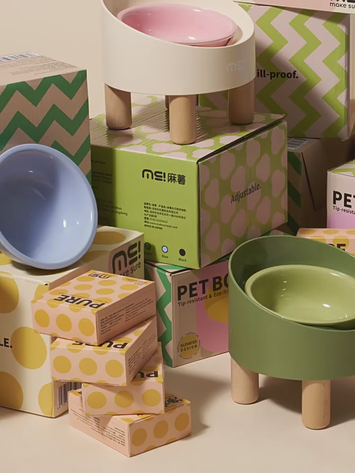Real beechwood feet with eco-friendly varnish add a warm furniture-like touch. Available in cute colors, this elegant bowl blends seamlessly with your décor while meeting daily feeding needs.