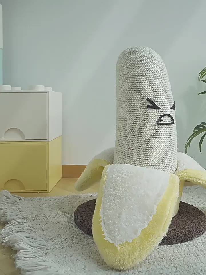- Materials: Sisal rope core; plush fabric exterior; foam padding; MDF support/base