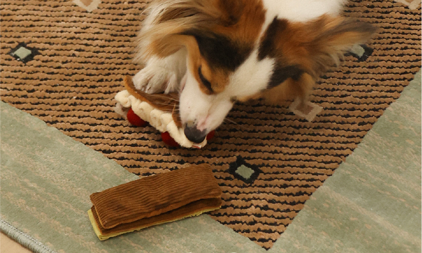 Dessert-themed plush toys with a gentle squeaker, crinkle layers, and a hidden treat pocket secured by baby-soft hook-and-loop. Choose from Napoleon, Basque, Swiss Roll, or Heart Puff for cuddly chewing, sniffing games, and photo-ready fun.
