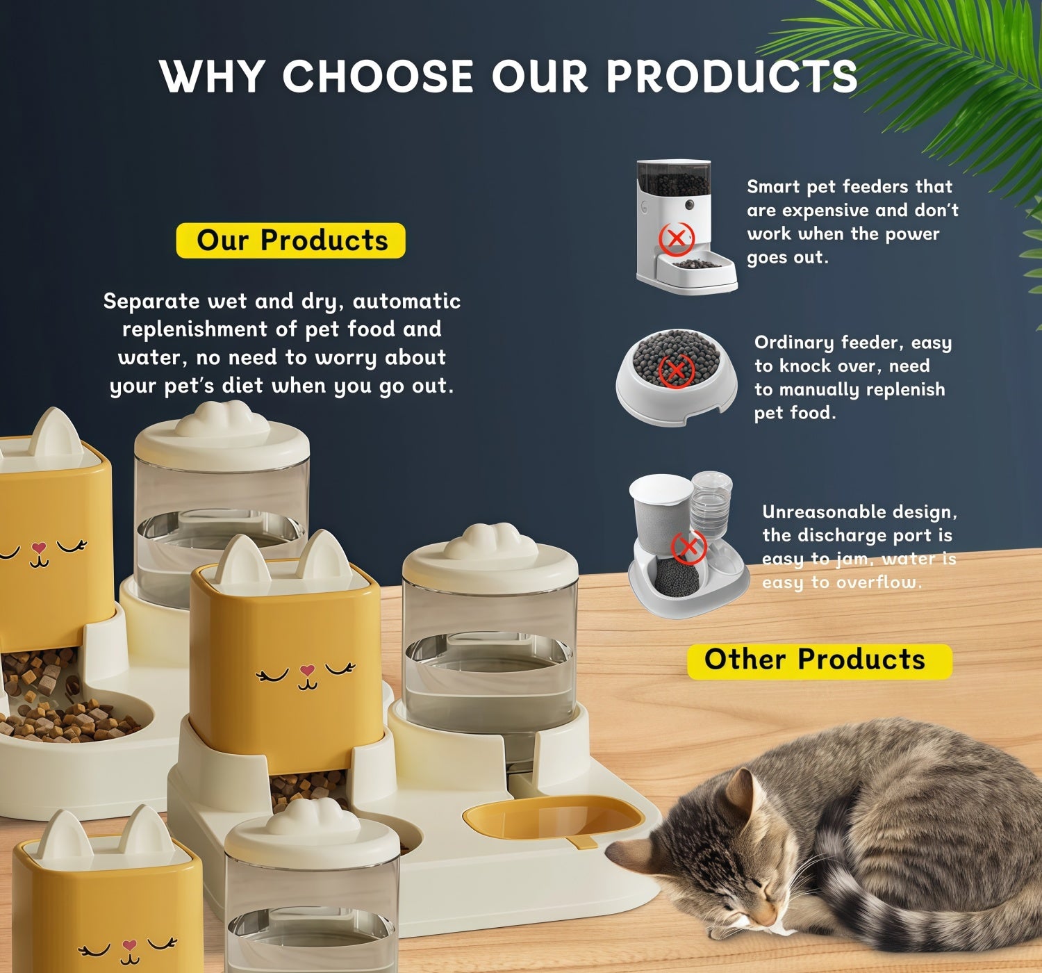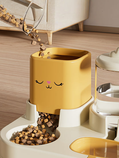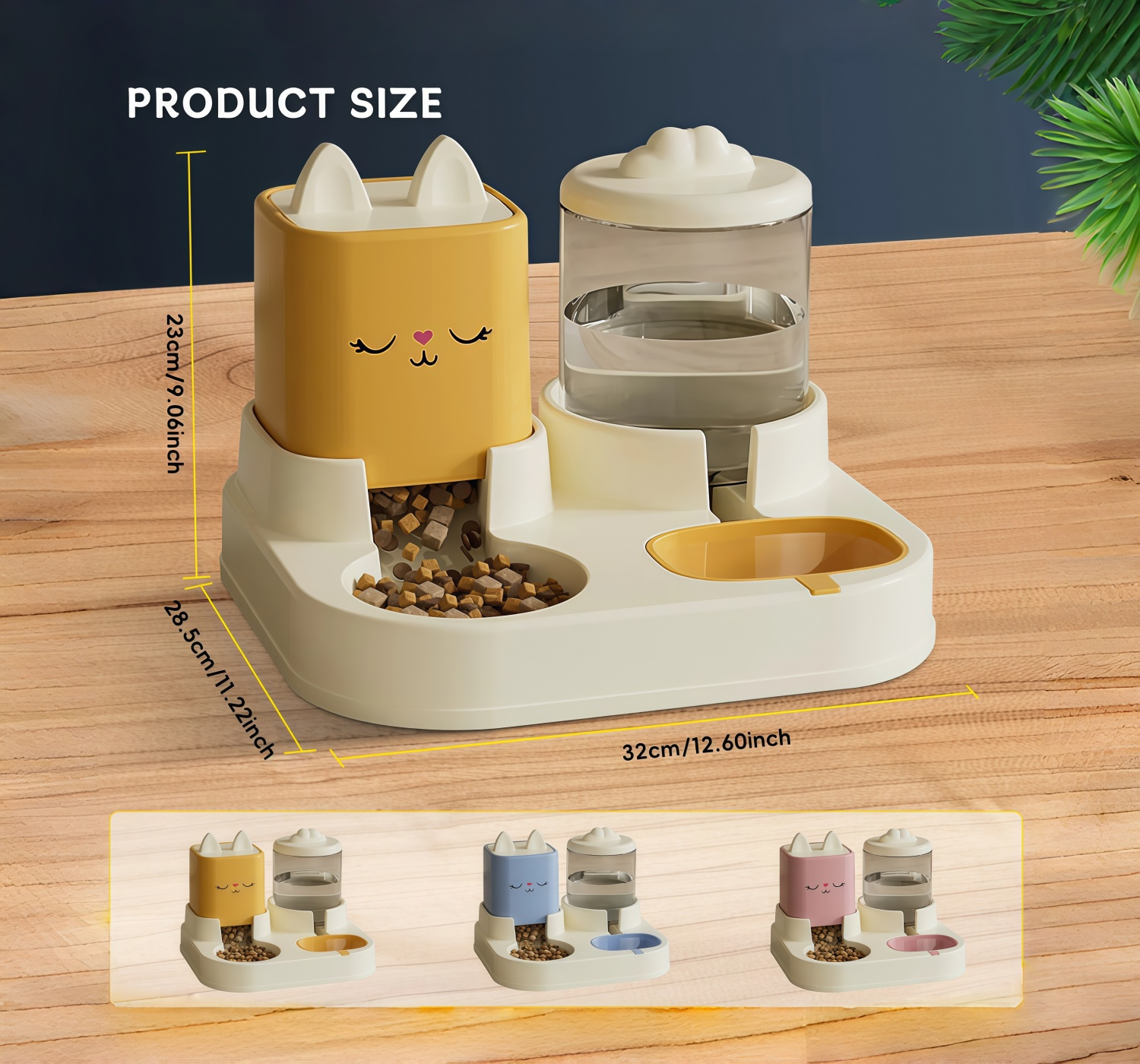 Combine a 2.2L gravity feeder with a 1.8L siphon waterer to cover daily food and hydration in one compact footprint. The wet-dry split keeps kibble crisp and the water bowl clean—perfect for busy pet parents.
