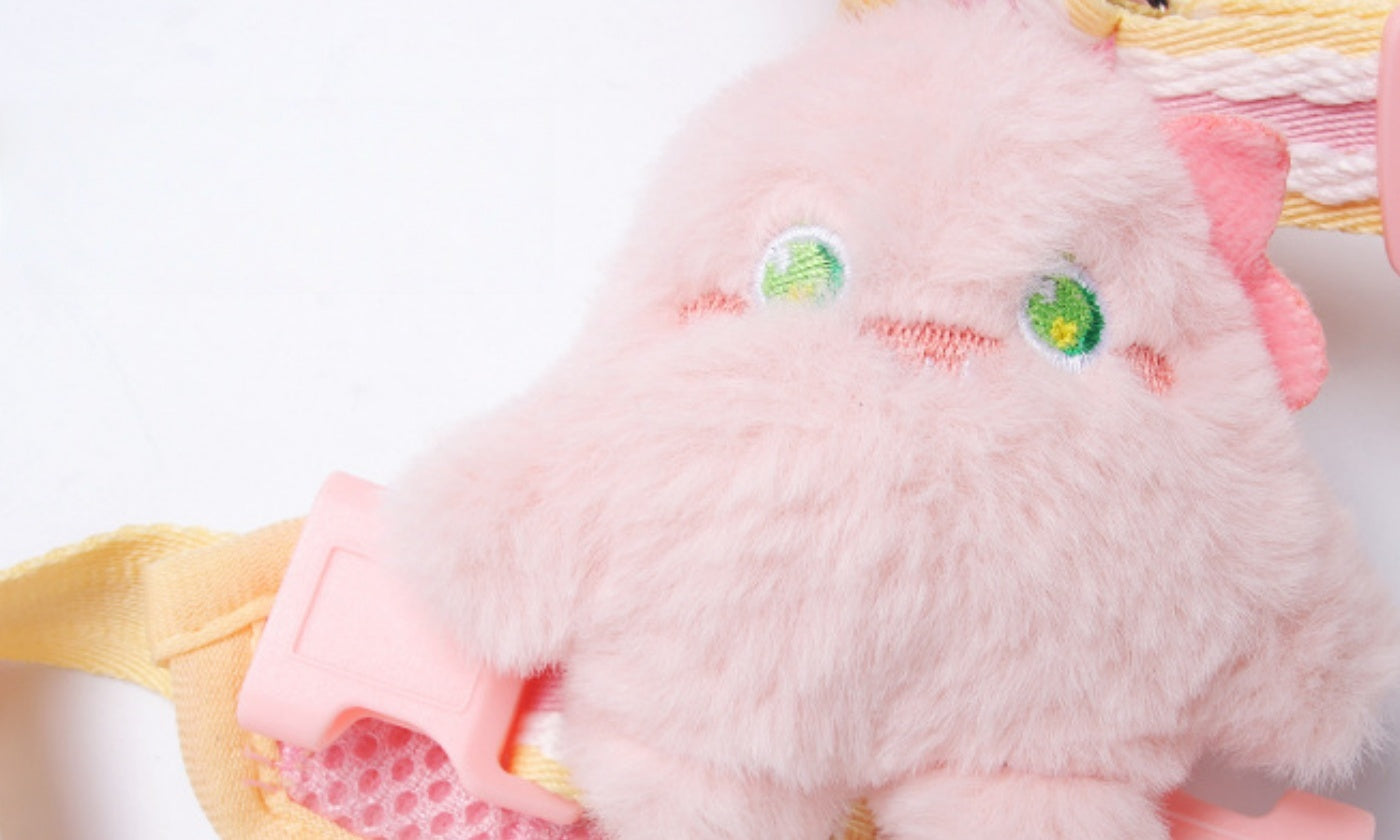 A stitched “monster” buddy rides along as color-blocked webbing wraps the vest in cheerful dopamine tones. The mesh body stays soft against fur and skin, making summer strolls feel light, breezy, and camera-ready.