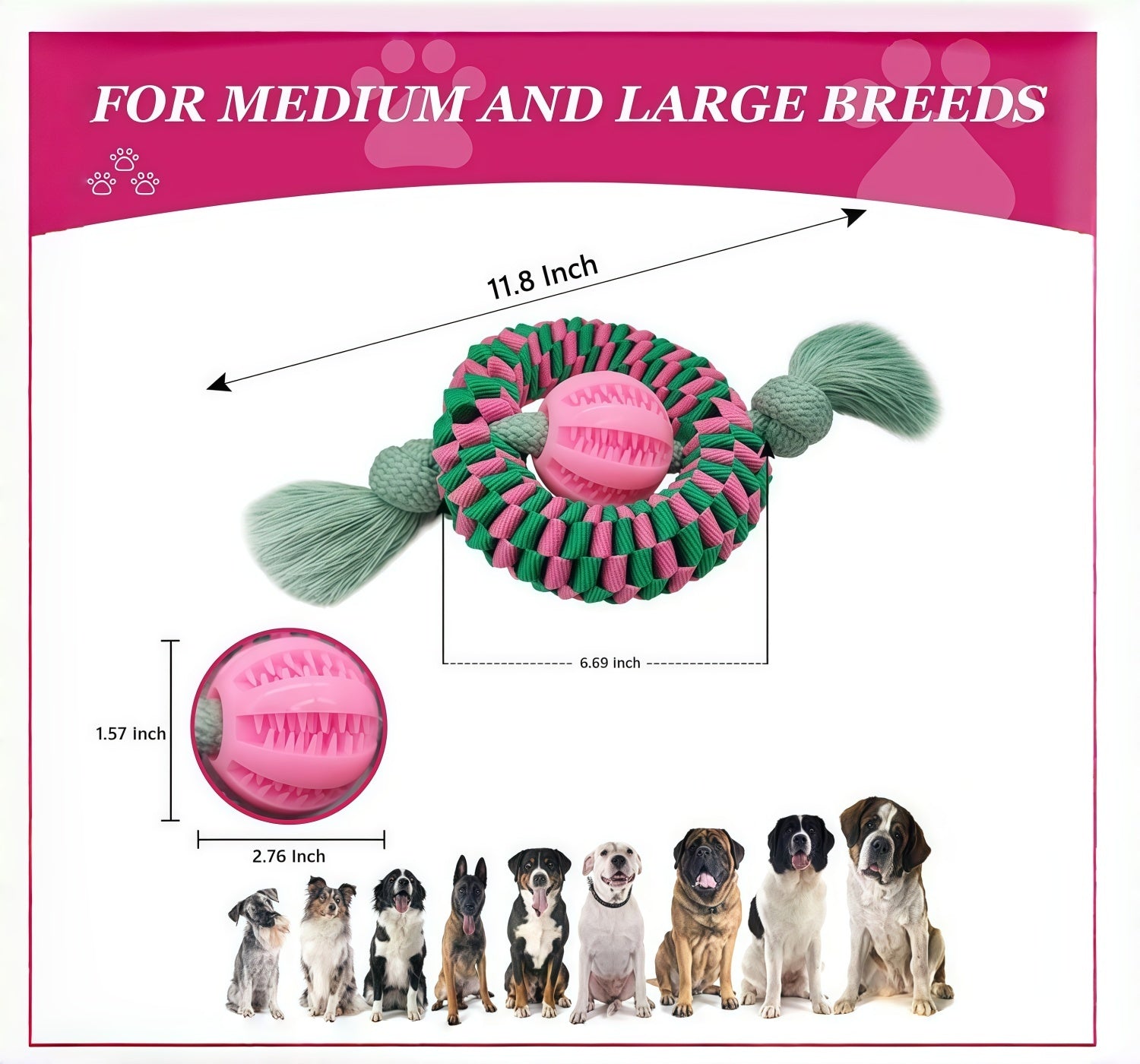 - Medium & large breeds; aggressive chewers