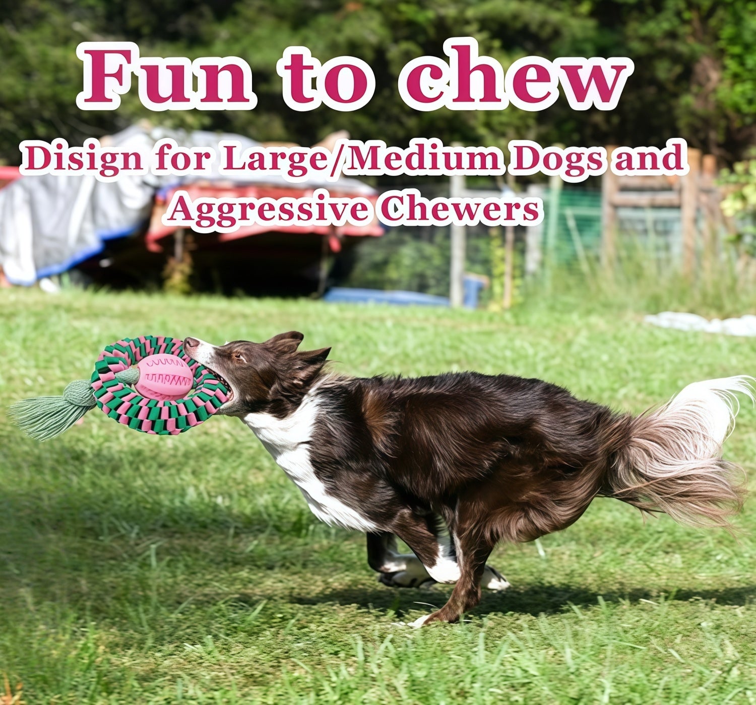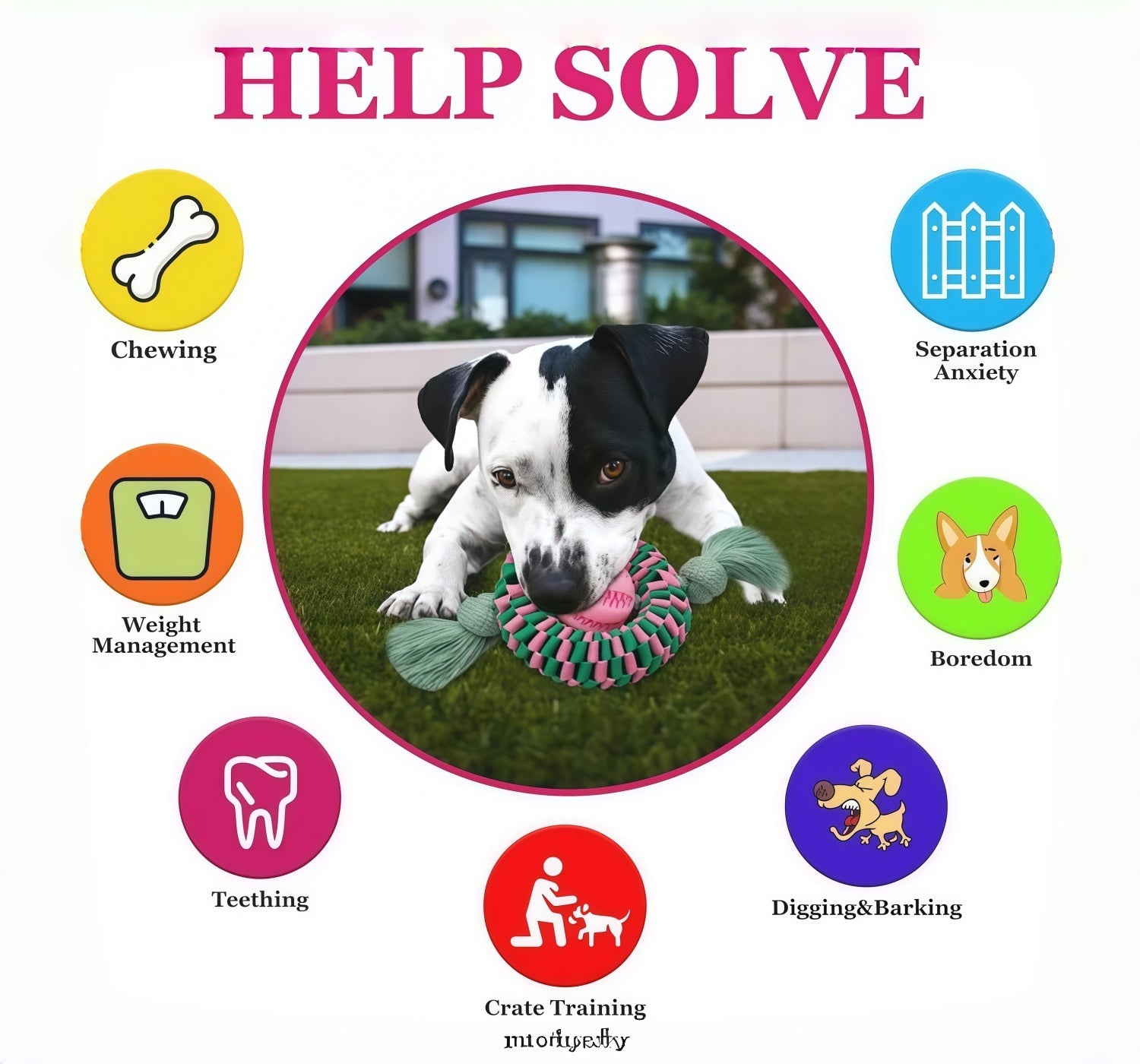 - Chewing, tug, fetch, treat-dispensing, stress relief