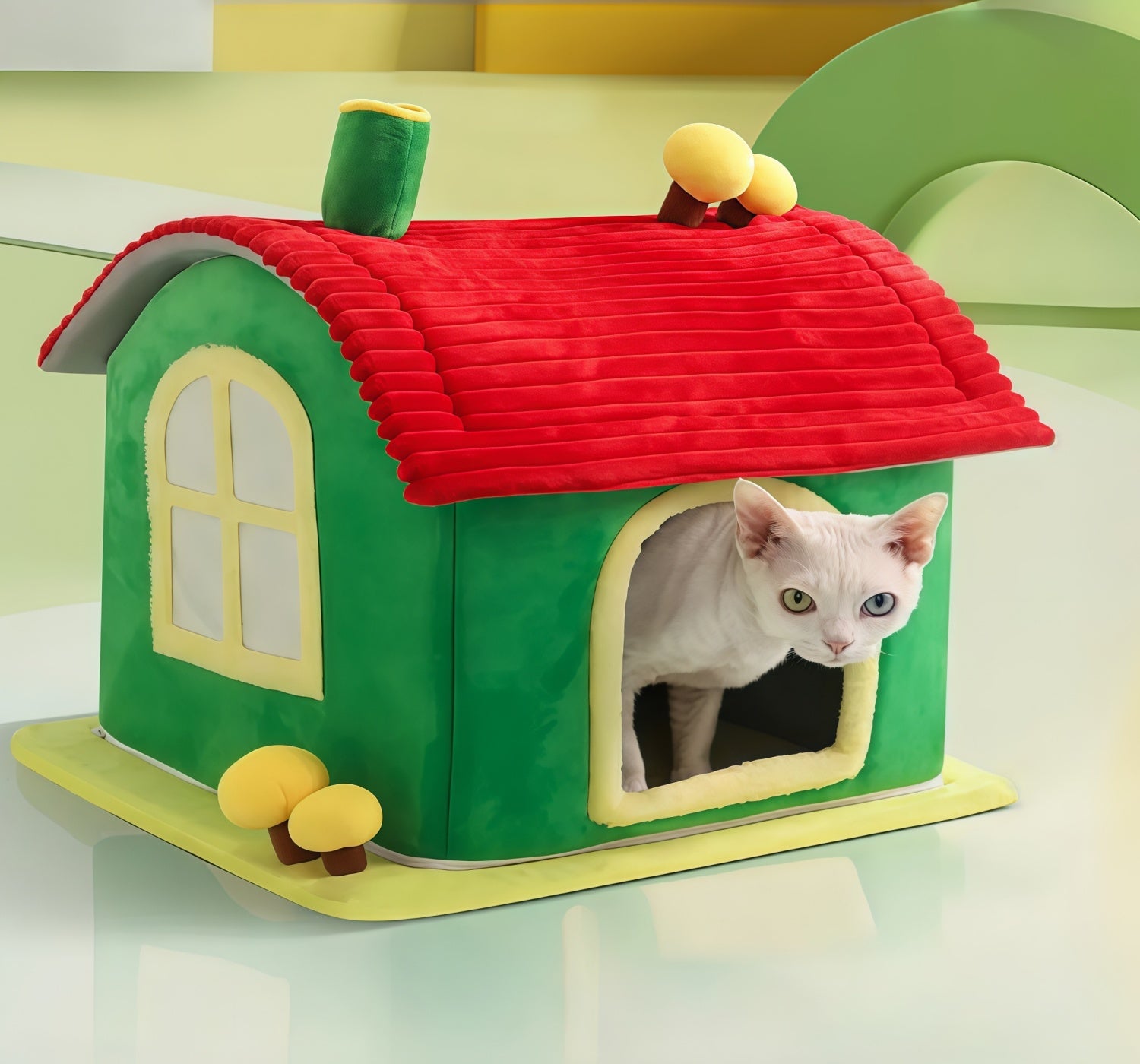 Cozy red & green hideout for indoor cats