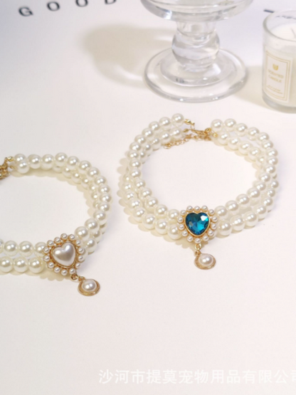 Gemstone bowknots with faux-pearl collars/necklaces bring soft elegance and playful charm. light, pet-safe, party-ready—turn daily moments into a tiny royal runway.