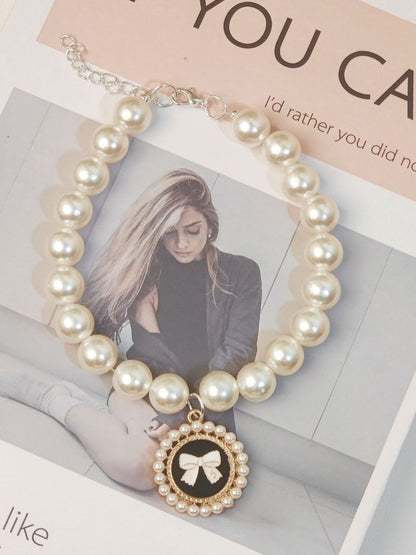 Princess-cute, little-chanel style gemstone bow accessories for cats & dogs. pearl-look collars/necklaces in playful colors for parties or daily glam. lightweight plastic + faux pearls. sizes s/m/l (neck ~20–35 cm).