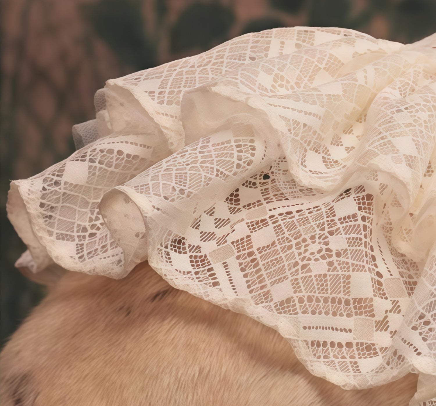 The dress is gorgeous and well made, but I learned the hard way it’s not a good choice for zoomies with bigger dogs. The lace held up, but I could see it snagging if they really wrestled. I’ll keep it for calm outings and photos from now on.