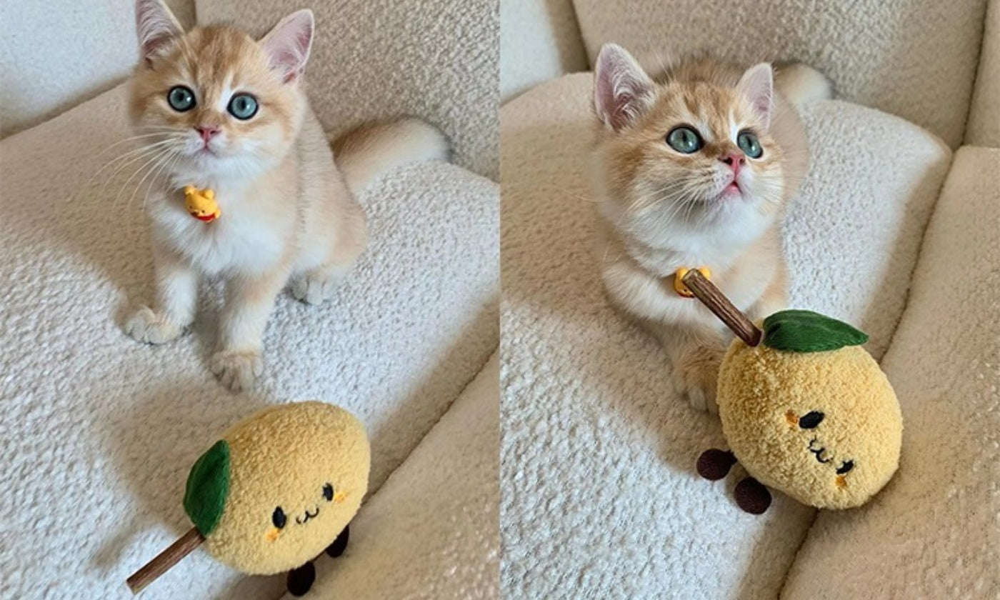 A cute lemon-shaped plush packed with premium PP cotton and matatabi (silvervine) to spark natural chewing. Thick crystal plush feels silky yet durable with tight seams—no shedding, no fading. Perfect for play, light gnawing, and stress relief.