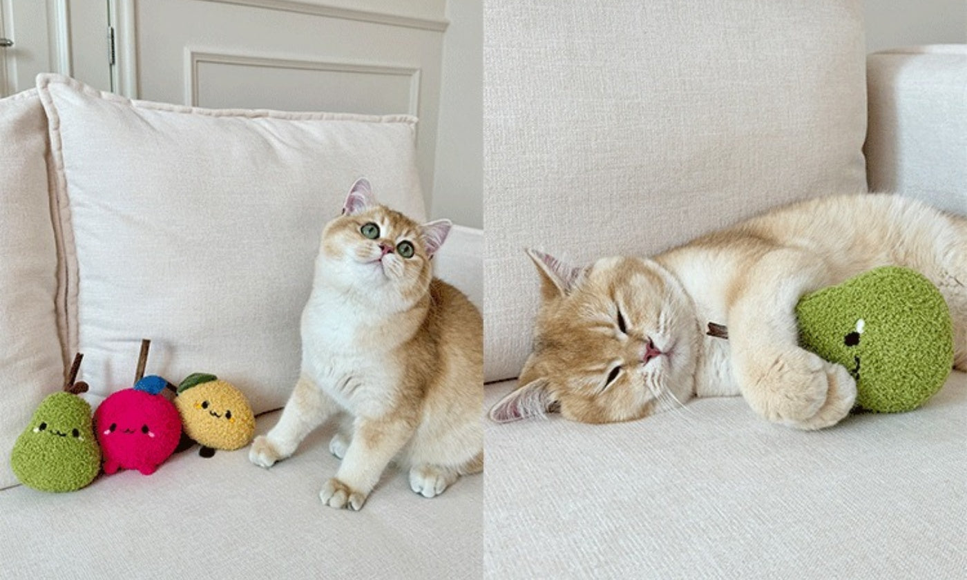 A pear-shaped plush packed with premium PP cotton and matatabi (silvervine) to spark natural chewing and play. Thick crystal plush feels silky yet durable with tight seams—no shedding, no fading. Perfect for self-soothing, light gnawing, and enrichment.
