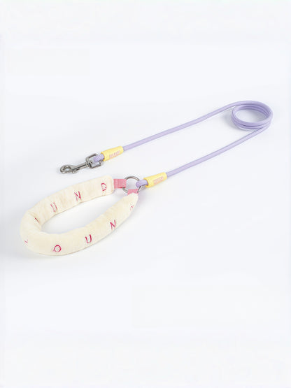 - Leash: soft fleece (faux-fur feel), polyester webbing, zinc-alloy hardware